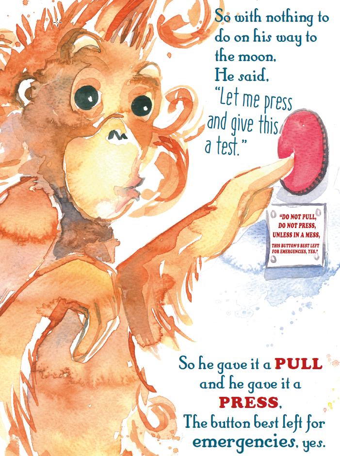 Oscar and the Blue Men is the story of Oscar the Orangutan who on his way to the moon pushes a button he should not. As a result he is violently ejected from his rocket-ship. He lands at the North Pole and here he meets A Blue man who helps him get back home again.